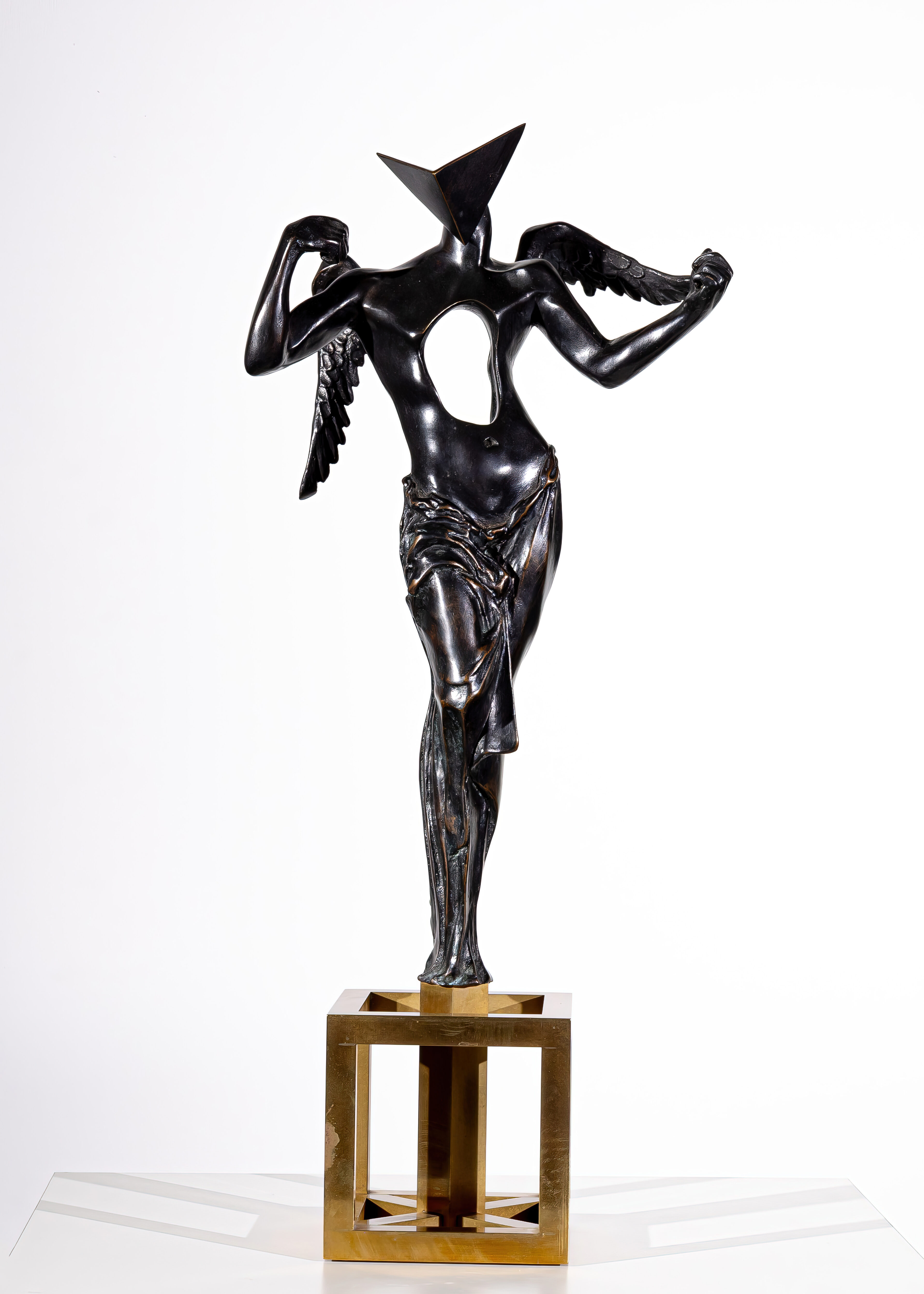Surrealistyczny Anioł to rzeźba z brązu, reprezentująca motyw anioła, który przenikał prace Dalego. Skrzydlata androgyniczna postać może być postrzegana jako odpowiedź Dalego na „Nike z Samotraki” w surrealistycznej eksploracji wewnętrznej psychiki. Dali postrzegał anioły jako transcendentnie czyste stworzenia, które służyły jako komunikatory między artystą a Bogiem. Dalsze konotacje religijne można odczytać w trójkątnej głowie, która reprezentowała triadę domów Dalego w Figueras, Pubol i Port Lligat, a także głęboko zakorzeniony wpływ Trójcy Świętej. Otwór w piersi anioła ma być freudowską metaforą – naczyniem światła, symbolicznym oknem na duszę które ma inspirować widzów, symbolizując zacieranie granic pomiędzy tym co ziemskie a duchowe.